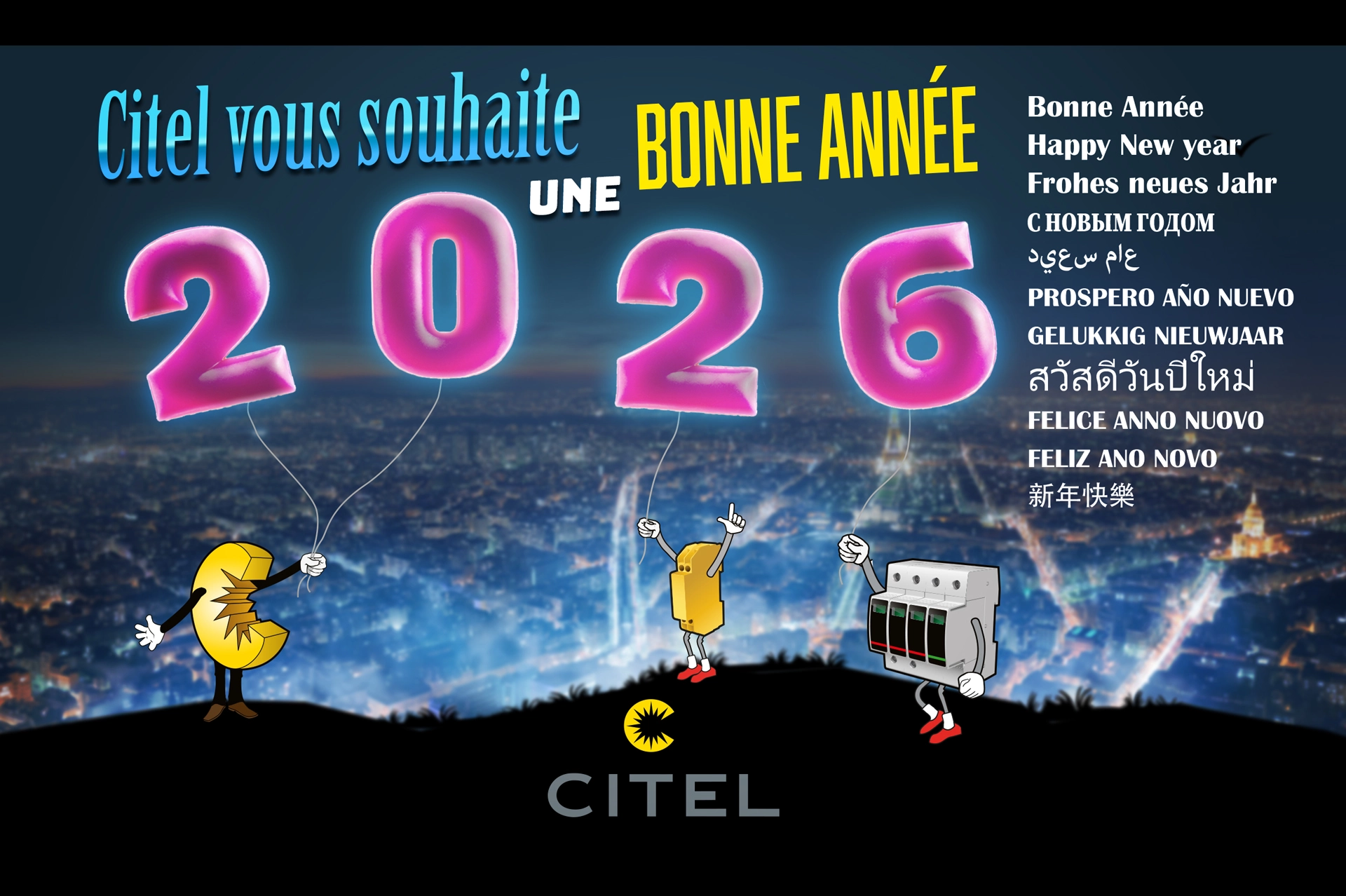 L’équipe CITEL vous souhaite une excellente année 2026 ! Que cette nouvelle année soit synonyme de sérénité, de croissance et, bien sûr, d’une continuité de service absolue pour toutes vos installations! En 2025, nous avons partagé ensemble de superbes projets pour sécuriser vos infrastructures face aux surtensions. En 2026, nous restons à vos côtés avec la même énergie (maîtrisée !) pour faire face aux défis de la transition énergétique, du photovoltaïque à la mobilité électrique. 🚀 Nos résolutions pour cette année : Continuer à innover pour votre sécurité. Vous accompagner avec une expertise technique toujours plus pointue. Protéger vos équipements contre les surtensions, pour que vous n'ayez qu'une chose à gérer : votre succès ! Merci pour votre confiance renouvelée. Ensemble, faisons de 2026 une année brillante et sans coupure ! Bonne année à tous ! 🎈🎉